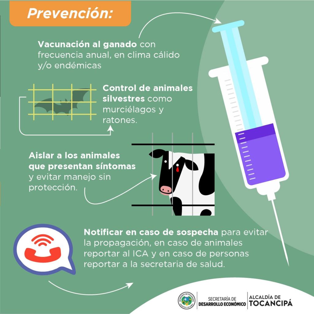Entre las principales medidas de prevención se destaca la vacunación anual del ganado, el control de murciélagos y roedores, así como el aislamiento de animales enfermos.