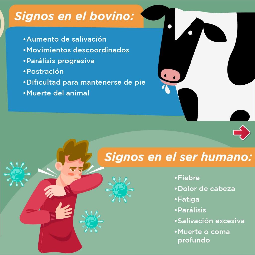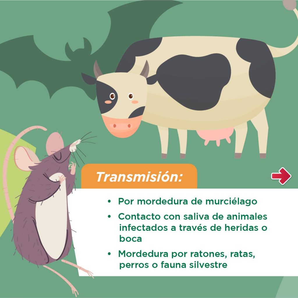 Según se informó, esta enfermedad se transmite principalmente a través de la mordedura de murciélagos o por contacto con la saliva de animales infectados. En el caso del ganado, los síntomas incluyen salivación excesiva, parálisis y postración, mientras que en humanos puede manifestarse con fiebre, dolor de cabeza y parálisis.
