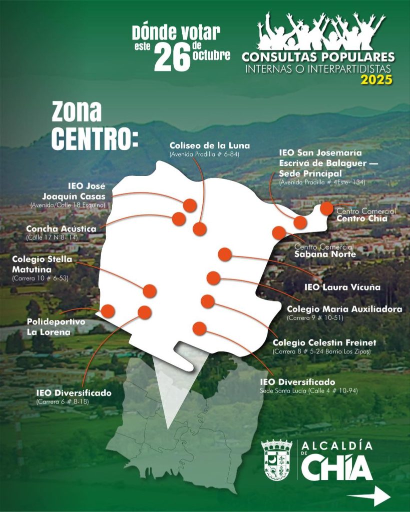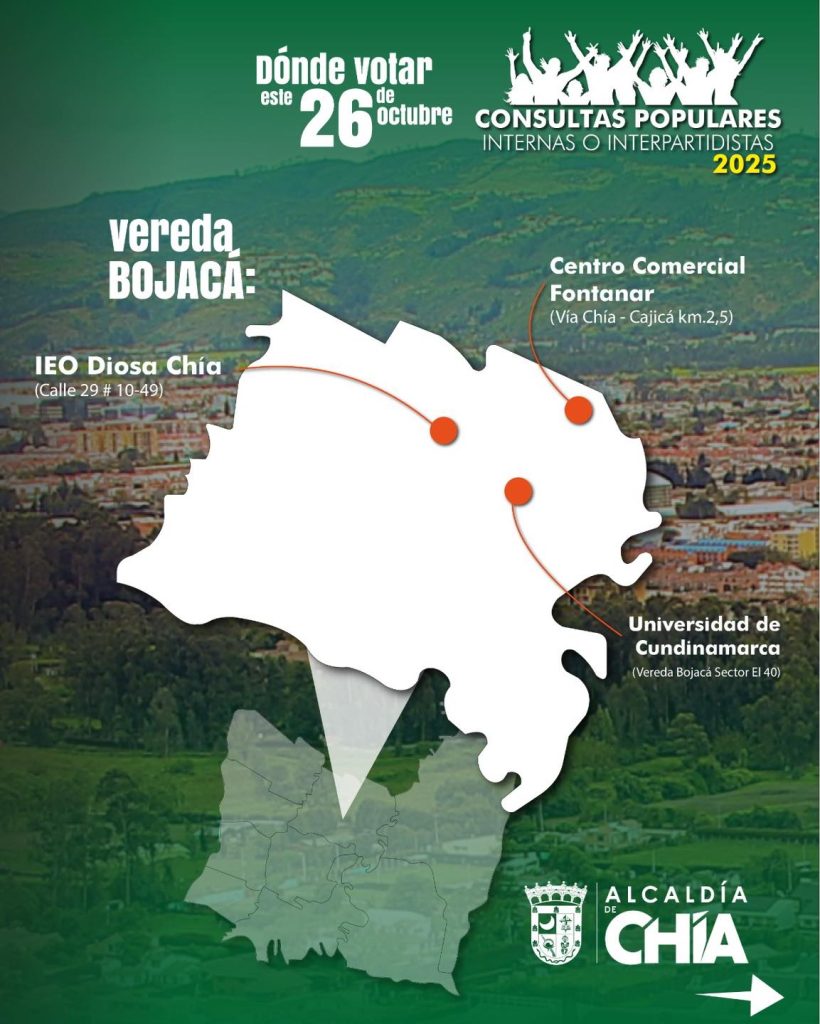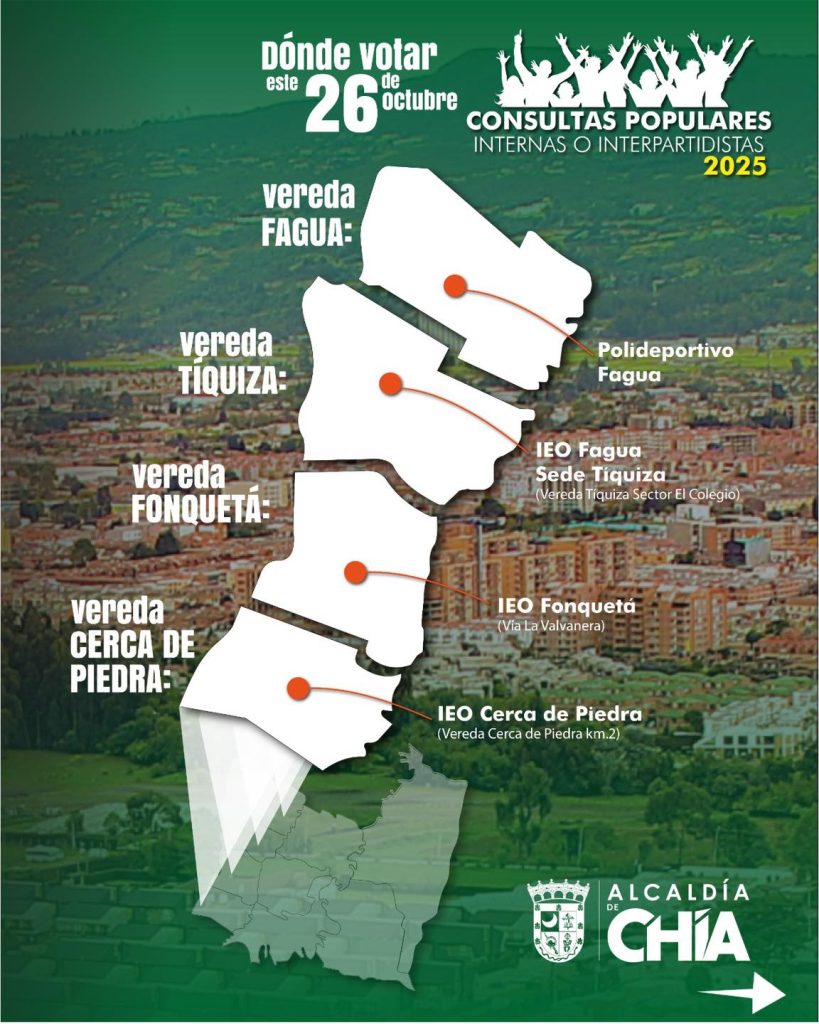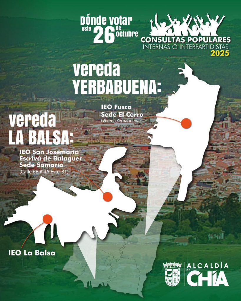 La Administración Municipal de Chía informó que este domingo 26 de octubre se llevarán a cabo las votaciones de las Consultas Populares, Internas o Interpartidistas 2025.