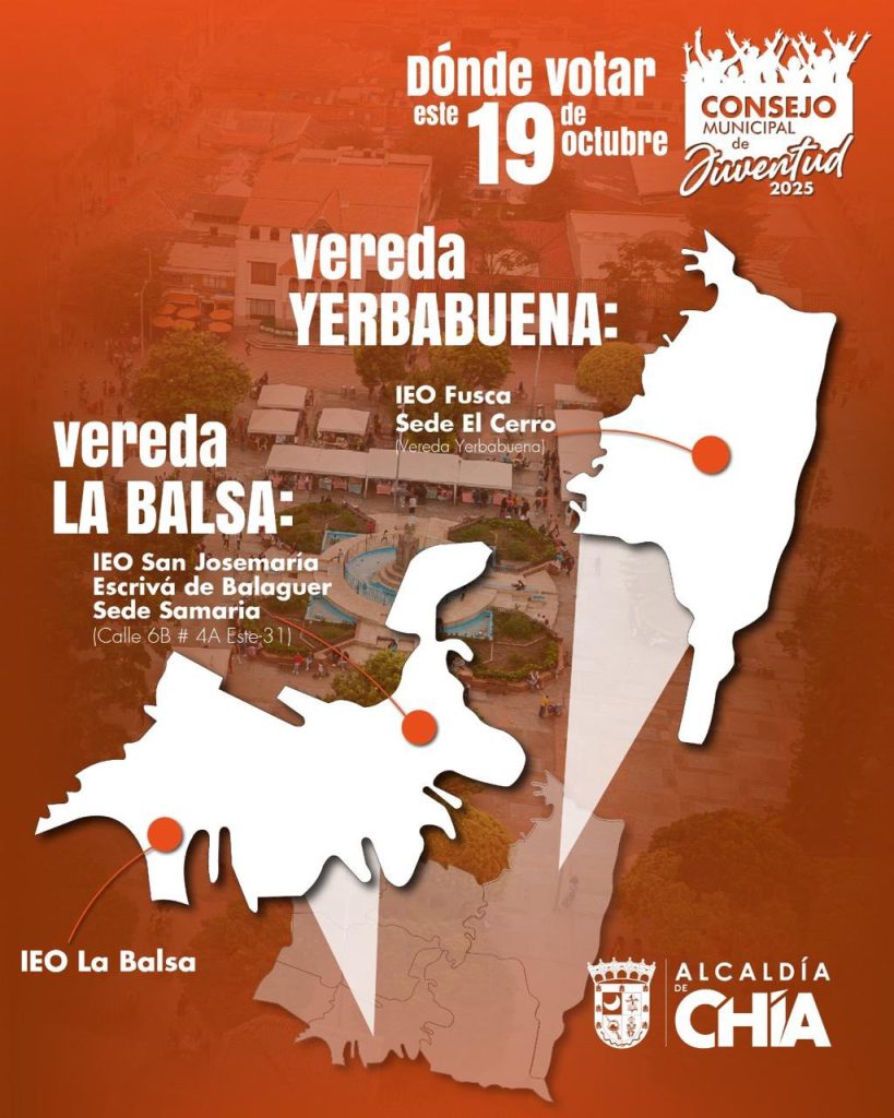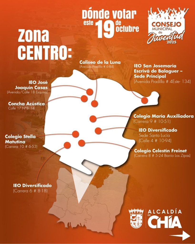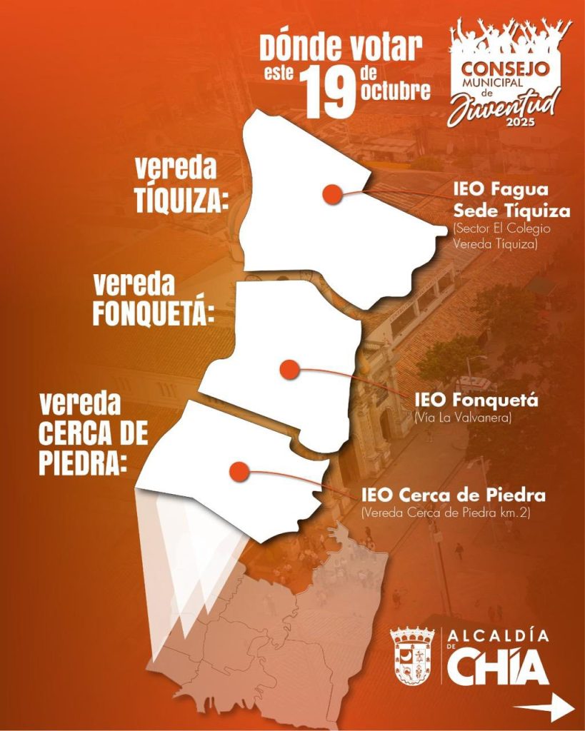 La Alcaldía de Chía dio a conocer los 18 puntos de votación habilitados en el municipio para las elecciones del Consejo Municipal de Juventud 2025.