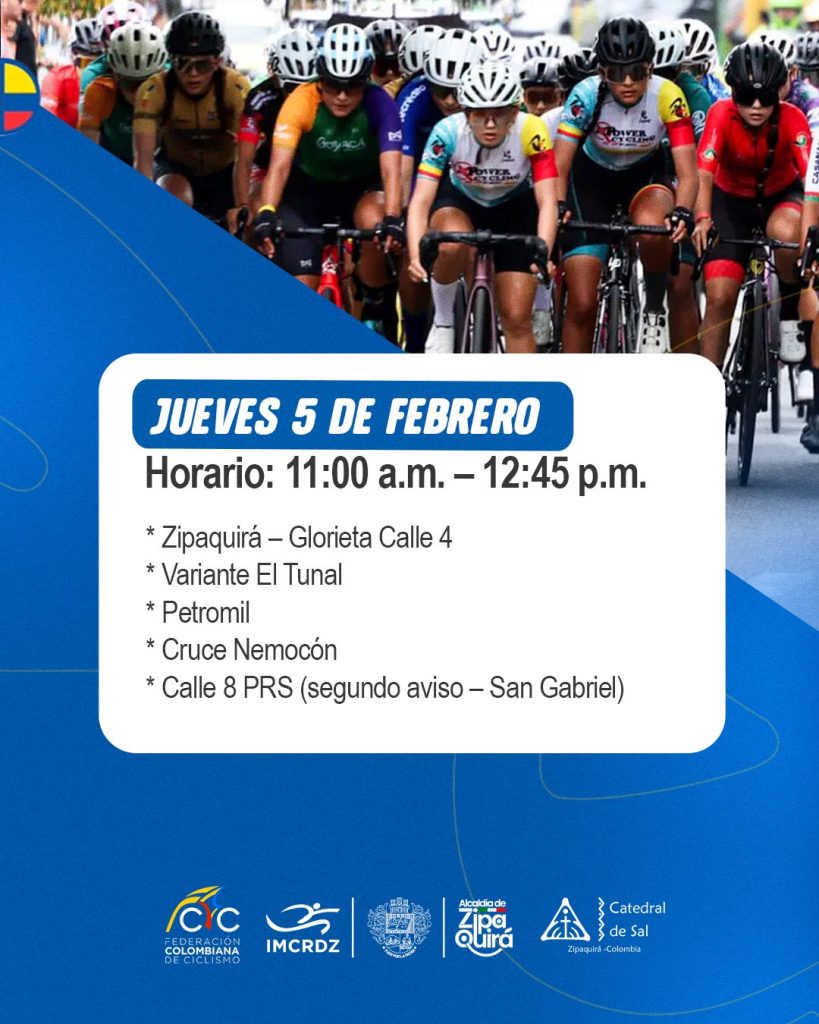 |Cierres viales| en |Zipaquirá| por el |Campeonato Nacional de Ruta| 2026
