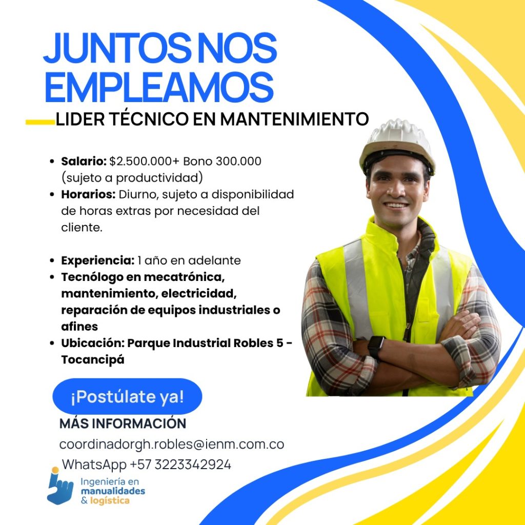 Los interesados en las vacantes de Líder Técnico en Mantenimiento y Coordinador SST pueden enviar su hoja de vida al correo coordinadorgh.robles@ienm.com.co o comunicarse al WhatsApp 322 334 2924.