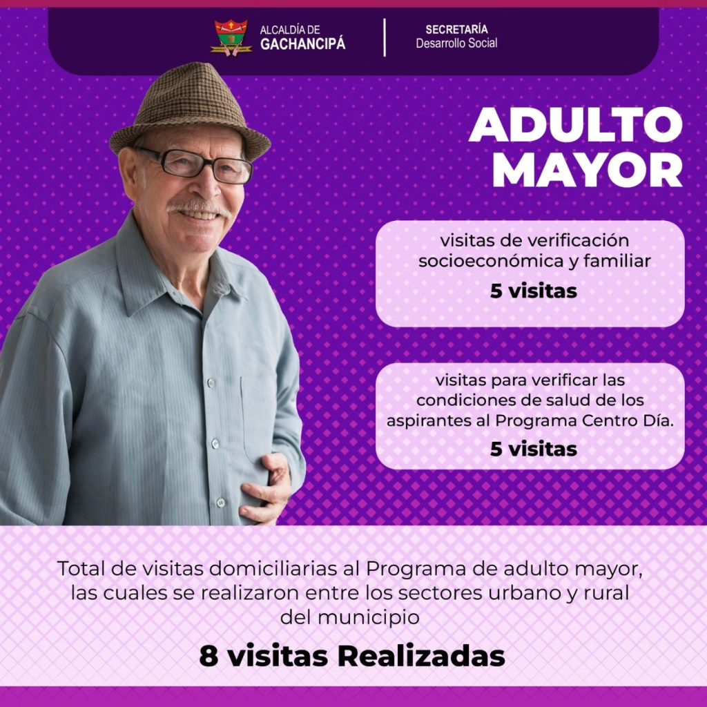 En la línea de atención al adulto mayor, se realizaron 10 visitas domiciliarias de verificación socioeconómica y de salud. Asimismo, en el Programa Centro Día fueron atendidos 380 adultos mayores, correspondientes a 280 mujeres y 100 hombres, a través de jornadas de integración y acompañamiento.