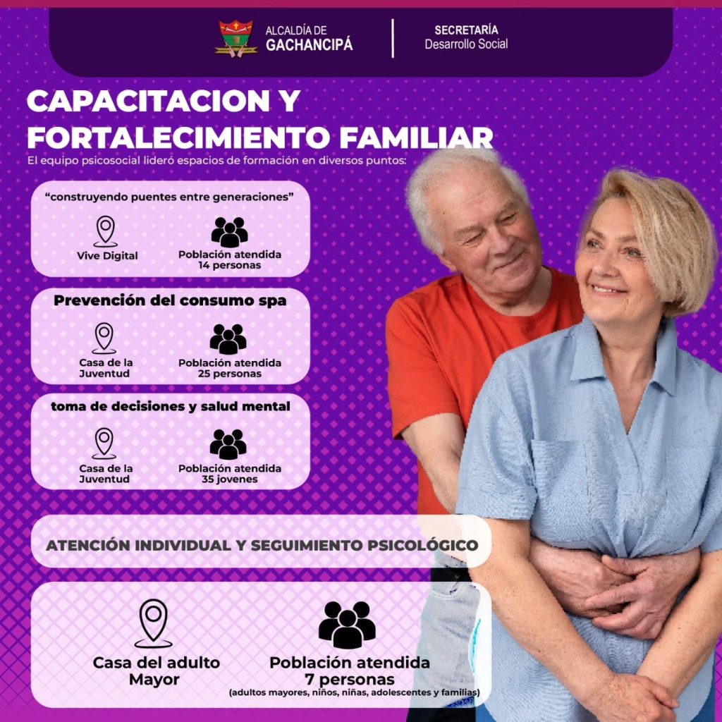 La Alcaldía Municipal de Gachancipá, en articulación con la Secretaría de Desarrollo Social, presentó los resultados de la atención psicosocial desarrollada entre el 28 de marzo y el 15 de abril de 2026, mediante acciones dirigidas a diferentes grupos poblacionales del municipio.