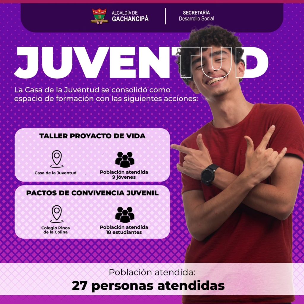 En el componente de juventud, desde la Casa de la Juventud y en instituciones educativas como Pinos de la Colina, se promovieron proyectos de vida y pactos de convivencia con los jóvenes del municipio.