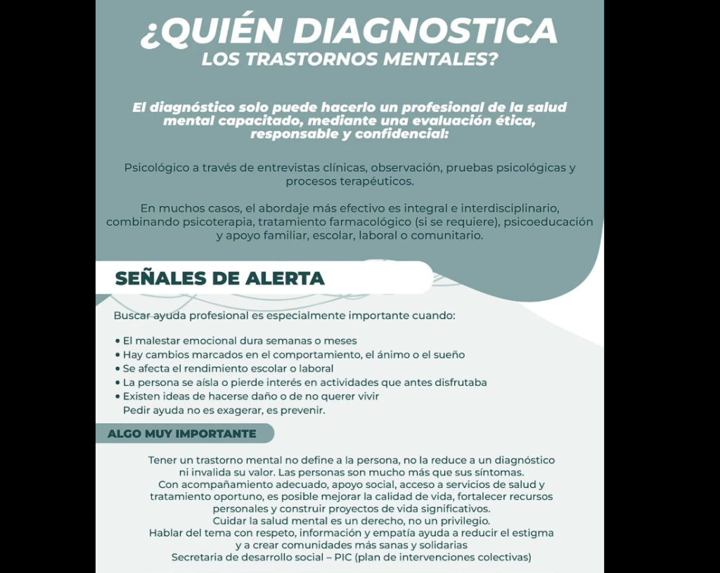 Desde la institucionalidad se recuerda que los trastornos mentales no representan debilidad, sino condiciones de salud que pueden afectar a personas de todas las edades, y que requieren comprensión, acompañamiento y atención oportuna.