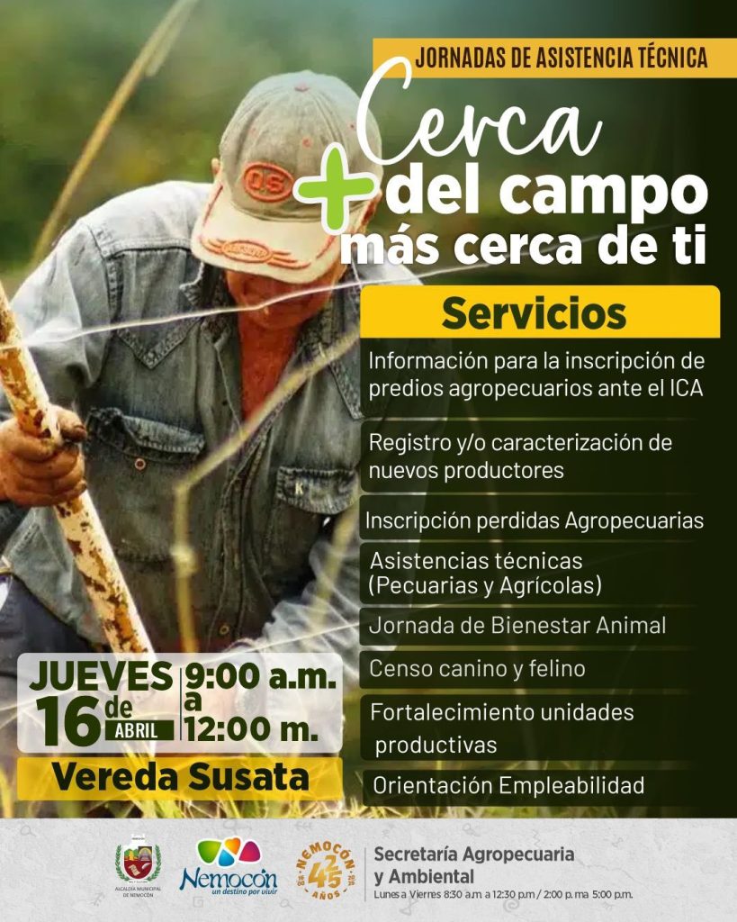 Durante estas jornadas se ofrecerán diversos servicios orientados a apoyar a los productores y promover el desarrollo rural, consolidando a Nemocón como un territorio productivo y sostenible.