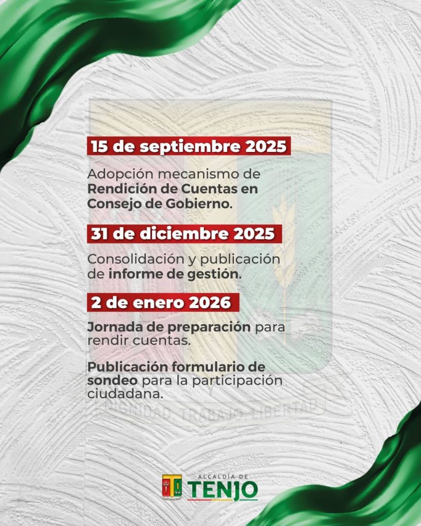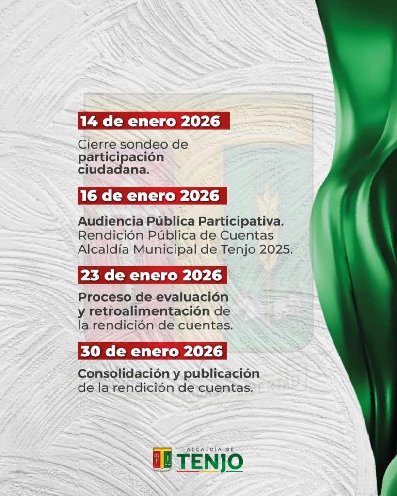 La Administración Municipal dio a conocer el cronograma de organización de la Audiencia Pública Participativa de Rendición de Cuentas 2025, un espacio de diálogo abierto en el que la ciudadanía podrá conocer los avances, resultados y acciones desarrolladas durante la vigencia.