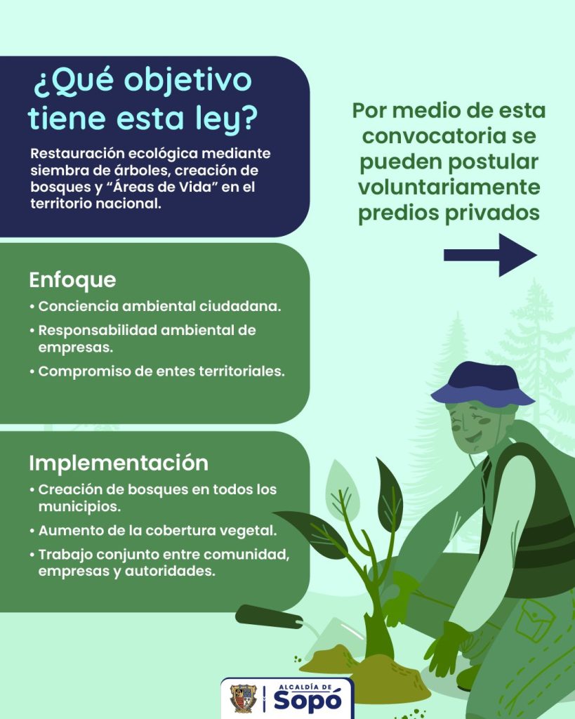 En el marco de la estrategia #AmbienteSopó, se socializa la Ley de Áreas de Vida, dando a conocer sus objetivos y enfoques orientados a la protección y recuperación ambiental del territorio.