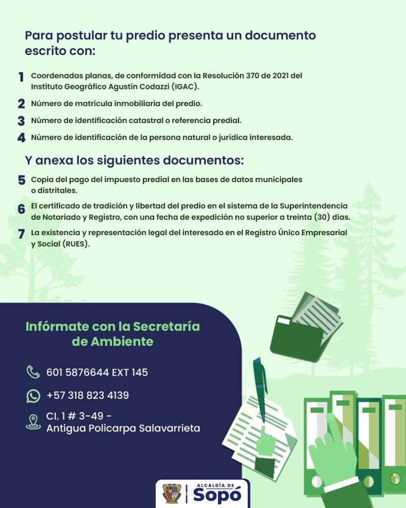 A través de esta iniciativa, se invita a la comunidad a conocer cómo postular sus predios para aportar a los procesos de reforestación y al fortalecimiento del compromiso ambiental del municipio. La participación ciudadana es clave para avanzar en la conservación de los ecosistemas y en la construcción de un entorno más sostenible.