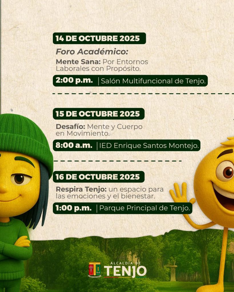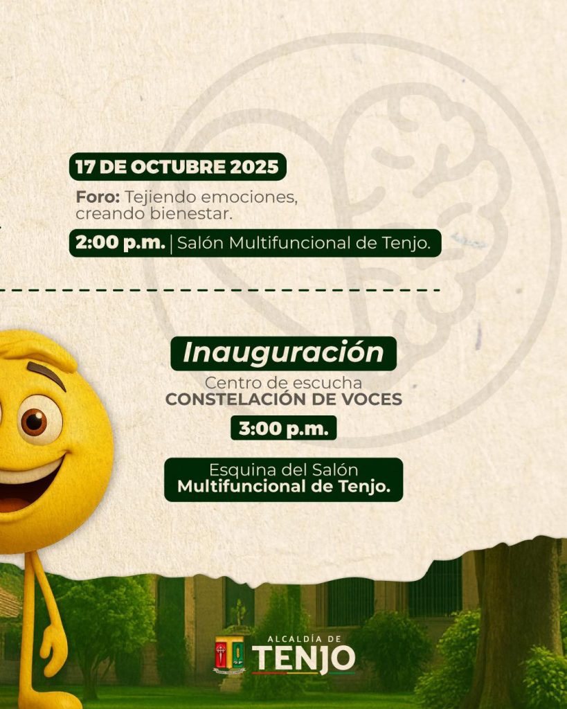 La Administración Municipal de Tenjo dio a conocer el cronograma de actividades de la Semana de la Salud Mental 2025, una iniciativa orientada a fortalecer el bienestar emocional y promover hábitos saludables entre la comunidad.