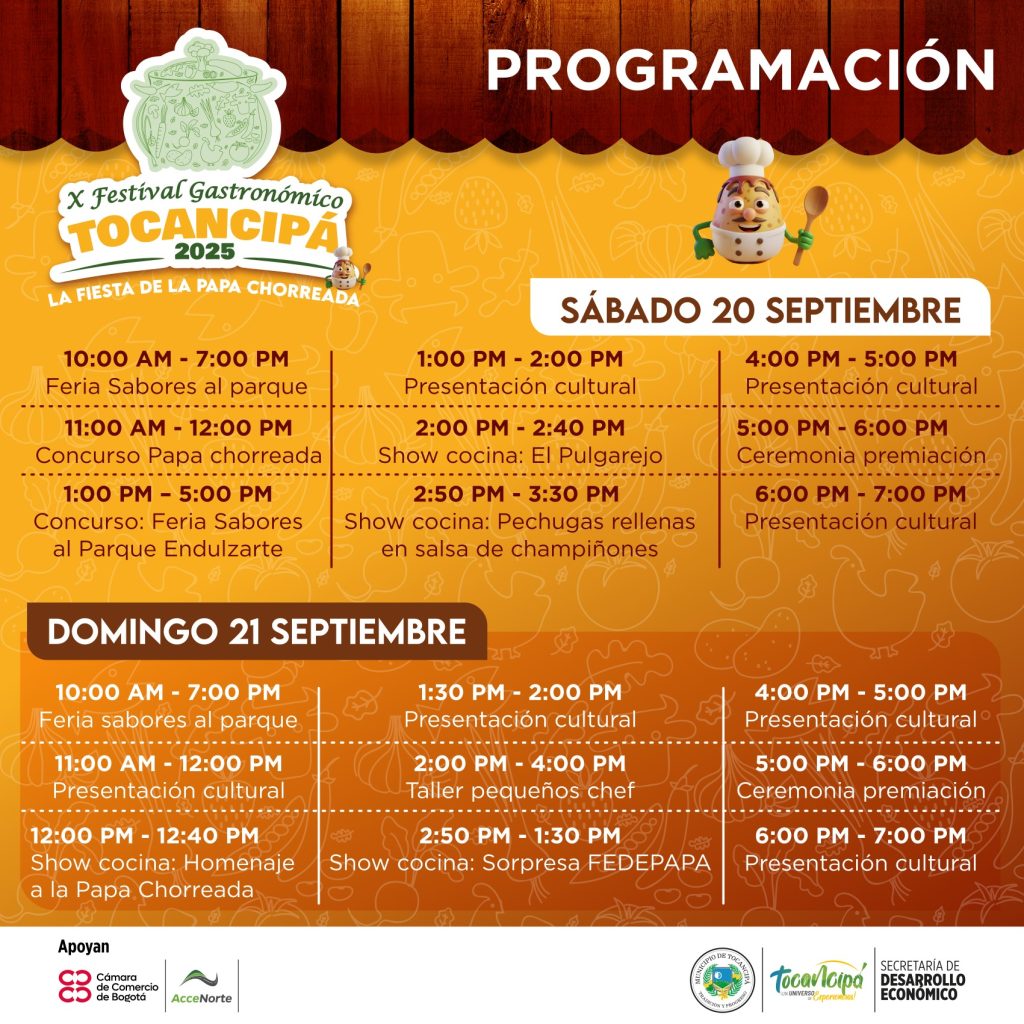 El municipio de Tocancipá celebrará el X Festival Gastronómico 2025 “La Fiesta de la Papa Chorreada”, un evento que reunirá gastronomía, música, concursos y expresiones culturales para el disfrute de toda la familia.