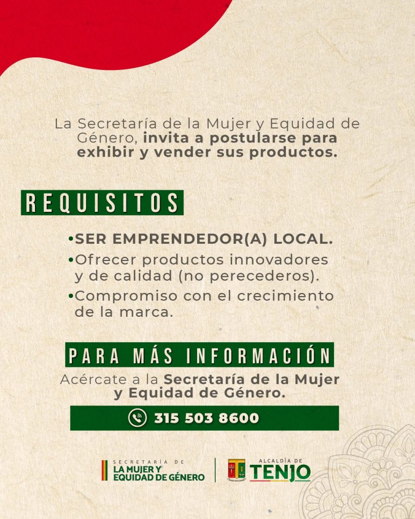 Las interesadas pueden acercarse a la Secretaría de la Mujer y Equidad de Género para vincularse a esta vitrina comercial y obtener más información a través del número 315 503 8600.